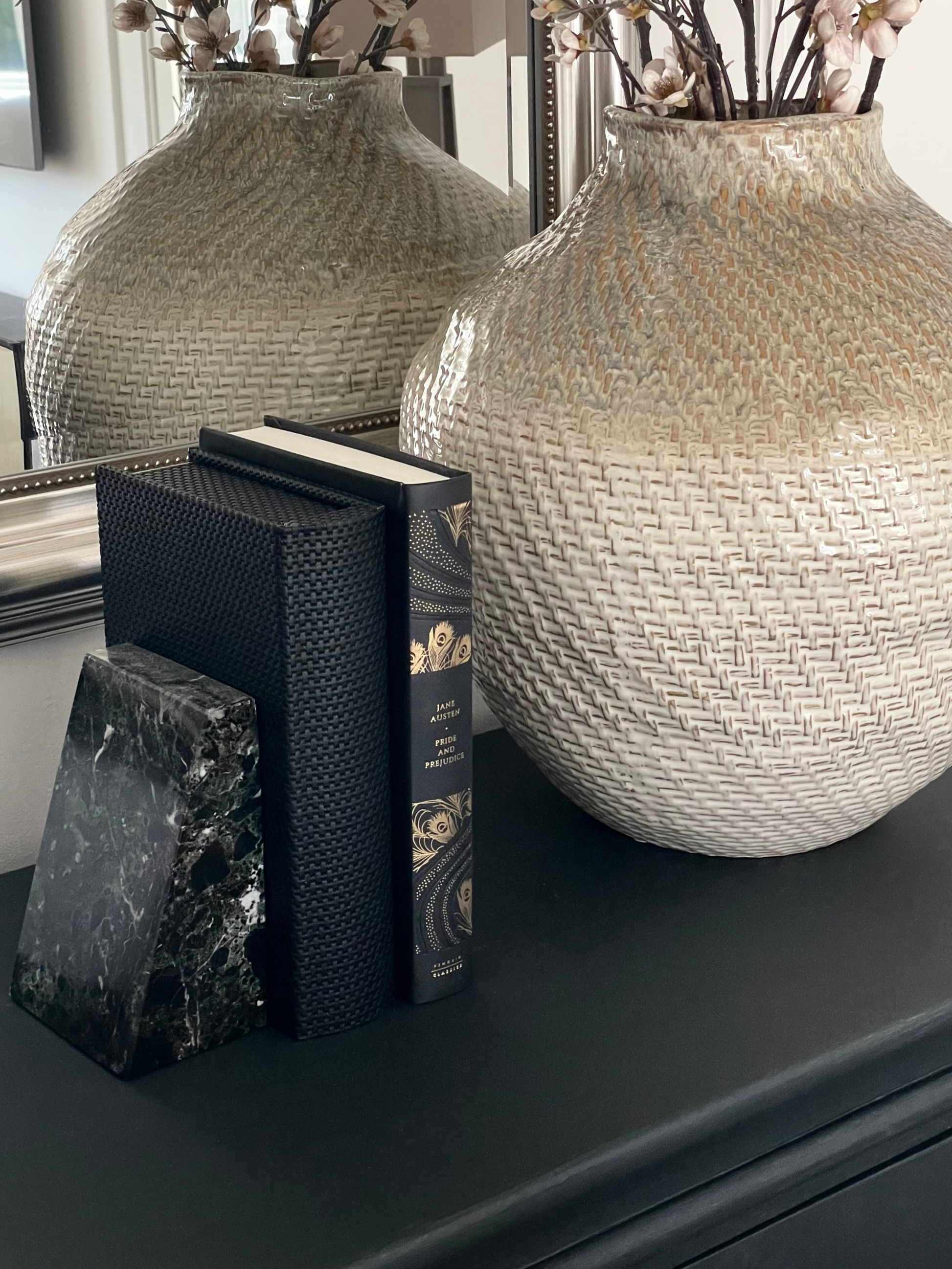 The Best & Bloom Hollow Book Box in Black PU leather offers a sophisticated storage solution that blends seamlessly with your décor.