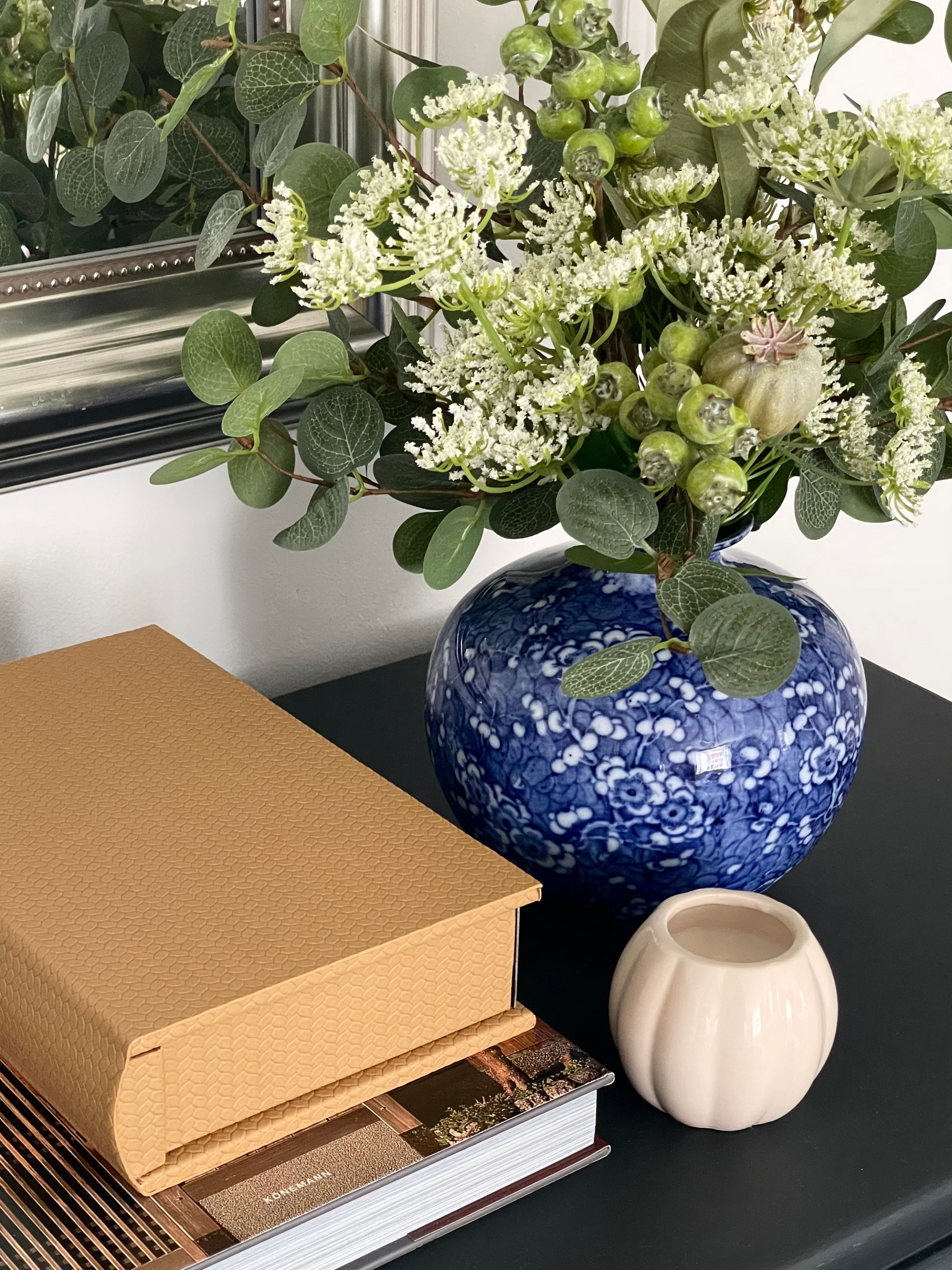The Best & Bloom Hollow Book Box in Beige PU leather offers a sophisticated storage solution that blends seamlessly with your décor.