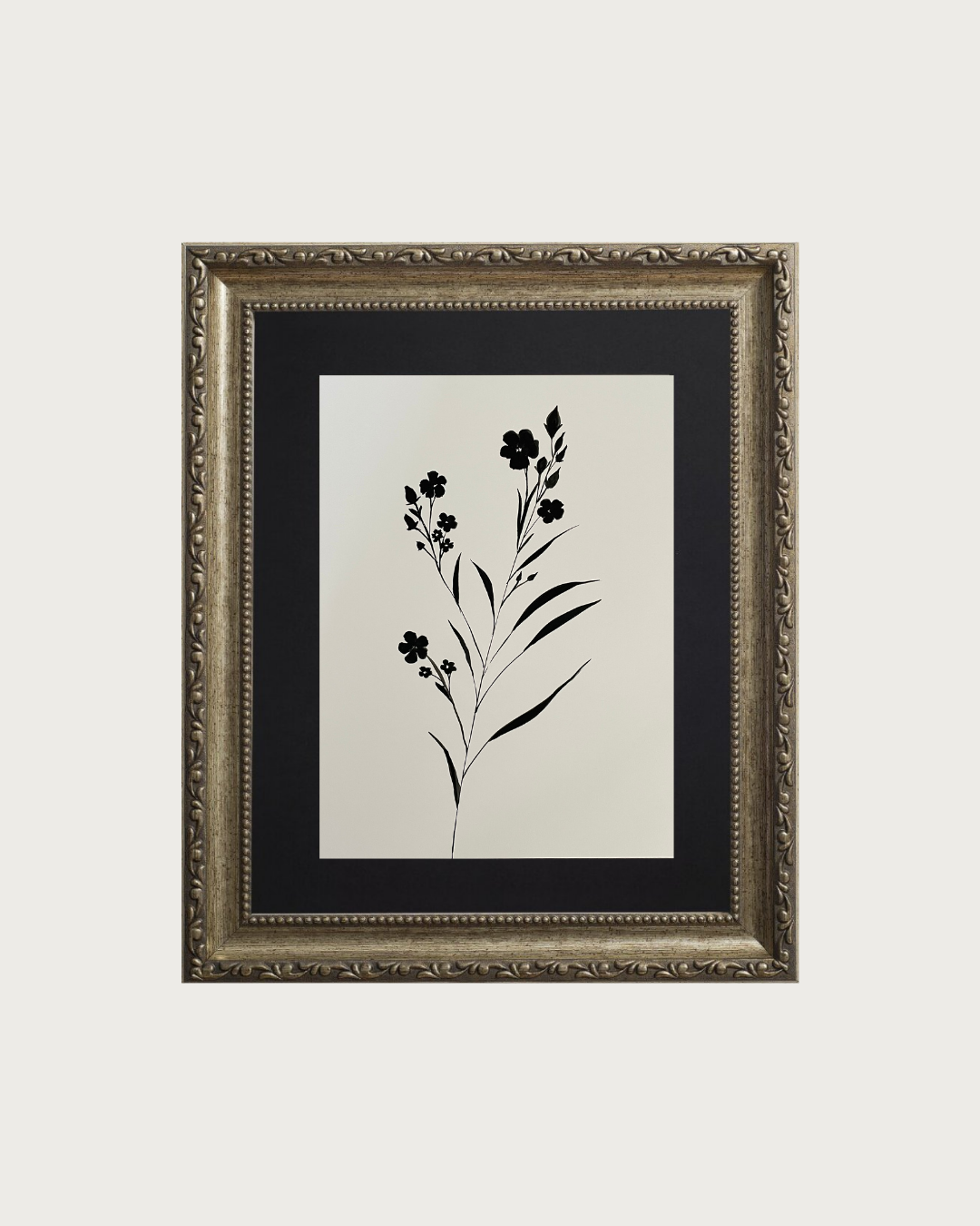 Bloom Silhouette Collection | Original Hand-Painted Black Gouache Artwork in Bronze Wood Frame