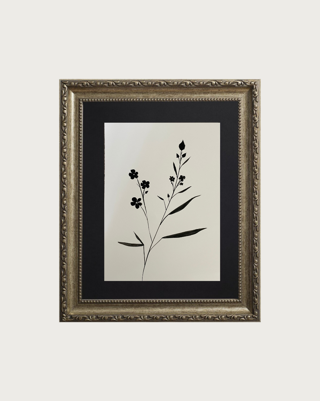 Bloom Silhouette Collection | Original Hand-Painted Black Gouache Artwork in Bronze Wood Frame