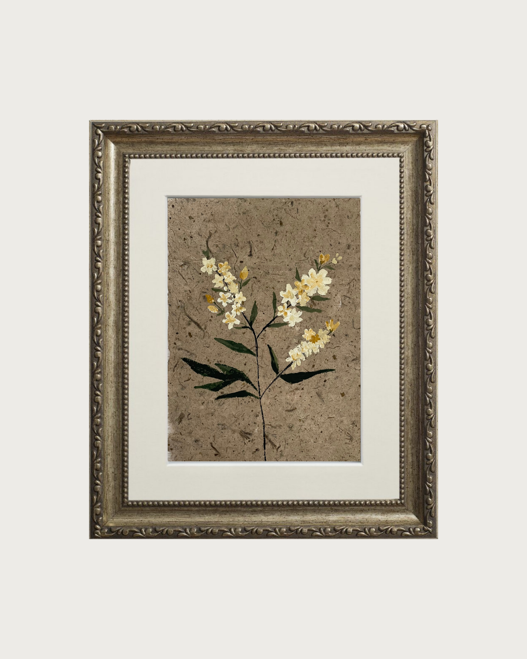 Painted in rich gouache on delicate, handmade A3 Acidea paper, this elegant work captures the enduring beauty of botanical forms in expressive silhouette, set against the warmth of textured paper.