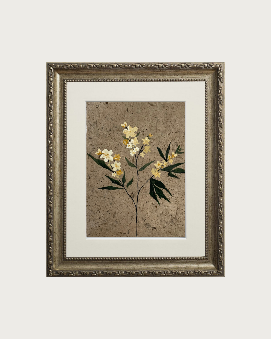 Painted in rich gouache on delicate, handmade A3 Acidea paper, this elegant work captures the enduring beauty of botanical forms in expressive silhouette, set against the warmth of textured paper.